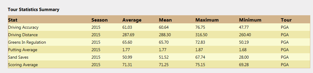 When running the analysis for a specific course, the weights entered should reflect the level of difficulty for that course. Some courses reward distance more so then other skill factor categories. Long par fives, wide fairways. Other courses reward accuracy, with narrow fairways and/or long secondary rough. Other courses have difficult greens to read, and golfers with higher putting skills may dominate. Each course can have different skill factor requirements. Set the skill factor inputs to the appropriate levels of importance. This will result in a more accurate report ranking players accordingly.